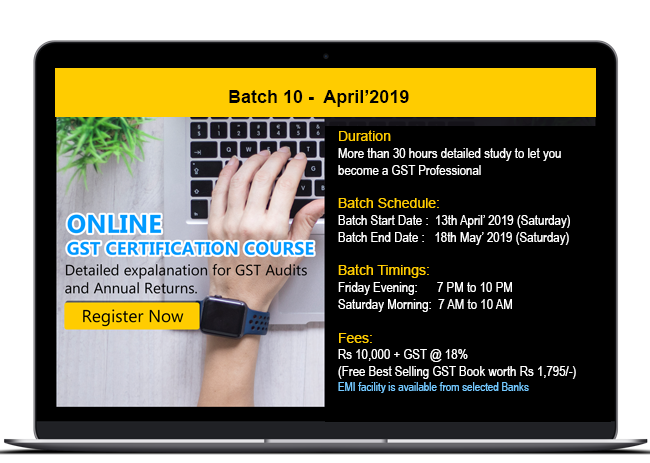 TaxGuru, GST Professionals and Govt. of India (Ministry of M.S.M.E) announces its most intensive and comprehensive Online GST Certification Course – April’ 2019 Batch.